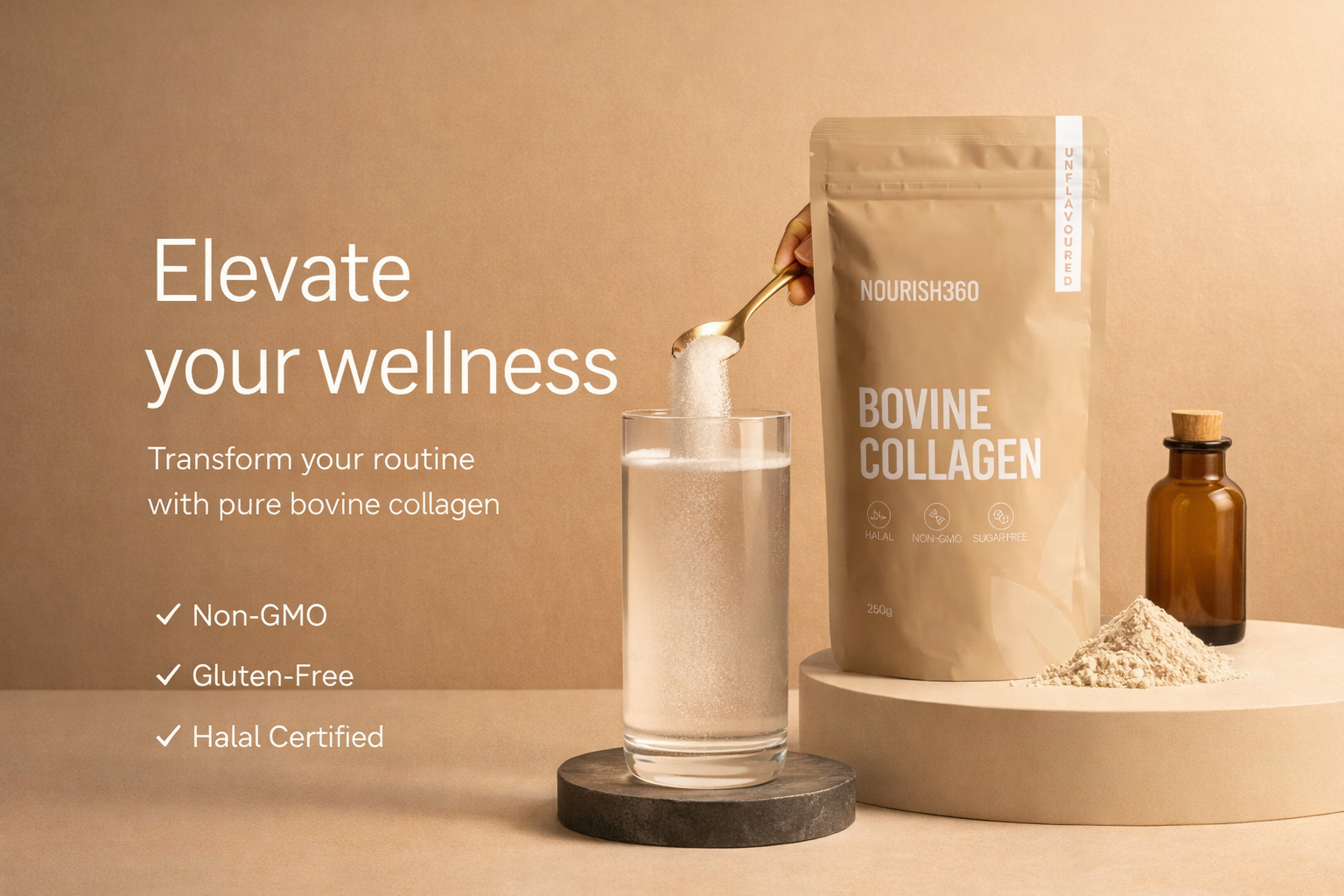 Our hydrolysed bovine collagen powder mixes effortlessly into your favorite beverages, enhancing your daily nutrition without altering taste.